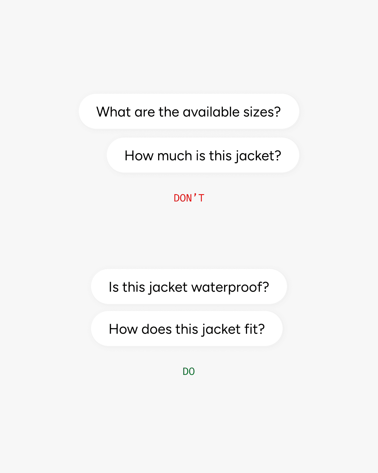 Prompts should only surface non-obvious product details (ingredients, material, care).